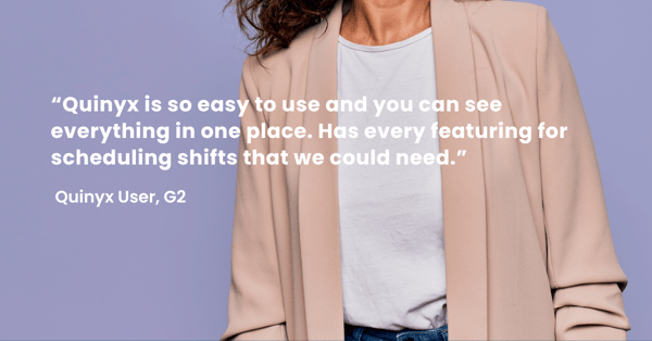 We love hearing your feedback and improving Quinyx. Your positive reviews led G2 to award us the "Leader" badge in the Workforce Management and Employee Scheduling category.