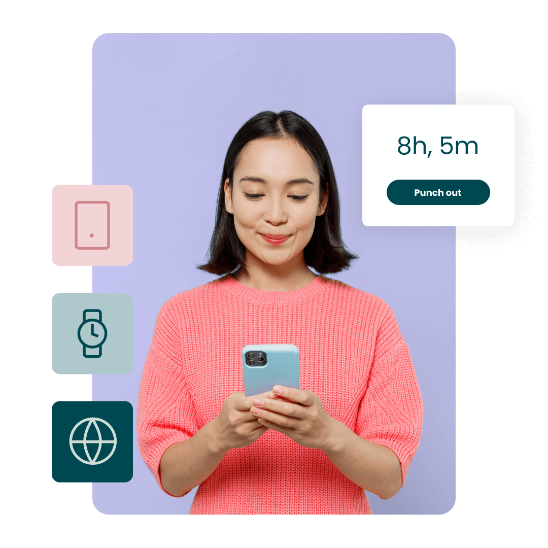 - Medarbejderne kan registrere tid ved at stemple ind og ud, mens de er offline eller online, via vores app, web eller smart watch.