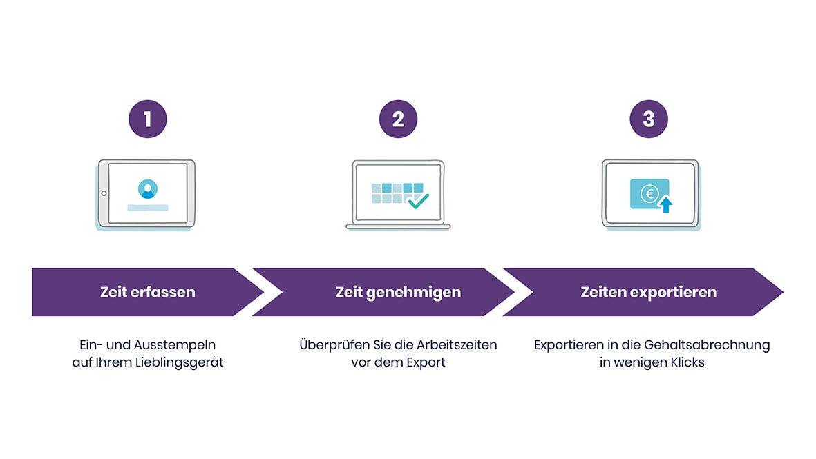 Durch eine Übertragung der so erfassten und korrigierten Arbeitszeiten an die Buchhaltung werden die Aufwände bei allen Beteiligten deutlich reduziert. Daneben werden fehleranfällige papierbasierte Prozesse einfach verschlankt und digitalisiert.