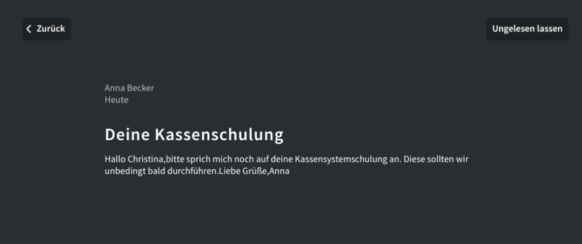 Die sehr benutzerfreundliche Oberfläche unserer App und Web-Oberfläche verbessert die selbstverständlich DSGVO-konforme Kommunikation zwischen Unternehmen und Mitarbeitern deutlich und kommt dabei mit minimalen Schulungsaufwänden aus. Erfahrungen zeigen, dass die Endanwender innerhalb von maximal 30 Minuten geschult werden.