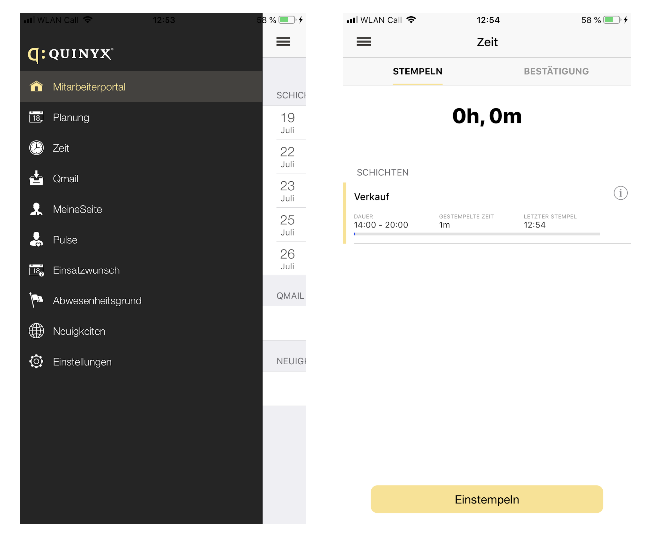 Mit Quinyx haben Ihre Mitarbeiter grundsätzlich zwei Möglichkeiten zur Zeiterfassung.
