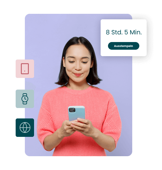 • Einfaches Ein- und Ausstempeln, entweder offline oder online - über unsere erstklassige Arbeitszeit App, Desktop, Tablet oder Smartwatch.