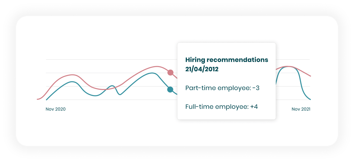 Automatically detect future staffing gaps and get recommendations to hire, train, or outsource resources across your business
