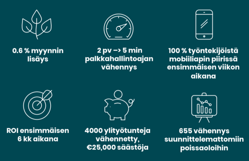 - Mahdollisuus parantaa sekä työhyvinvointia että liiketoiminnan kannattavuutta.