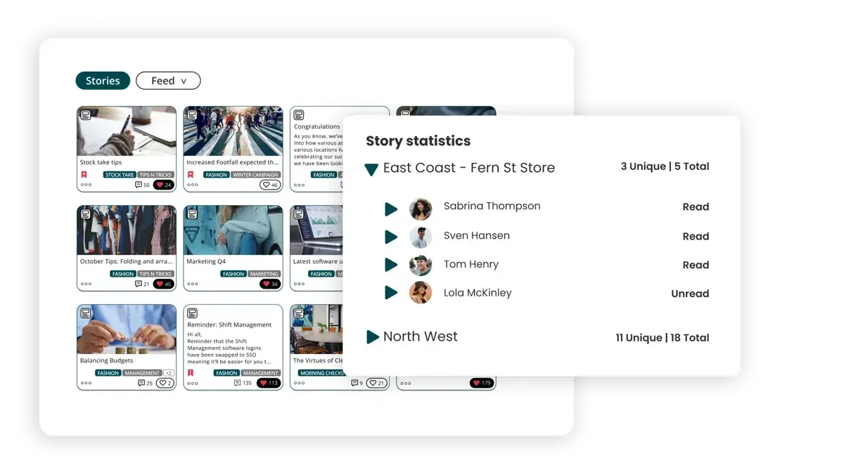Jaa tärkeitä uutisia, päivityksiä ja oivalluksia koko organisaatiolle vahvistaaksesi yhteisöllisyyttä ja parantaaksesi henkilöstön työtyytyväisyyttä sekä pysyvyyttä.- Jaa mukaansatempaavia yrityspäivityksiä, uutisia ja tärkeitä tietoja videoiden, kuvien ja tekstin avulla