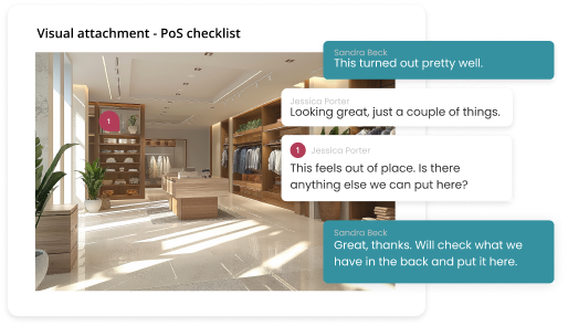 Frontline medewerkers weten precies wat ze moeten doen en kunnen direct chatten met hun managers voor feedback en goedkeuring. Dit zorgt voor minder verwarring en meer tijd voor de klant.