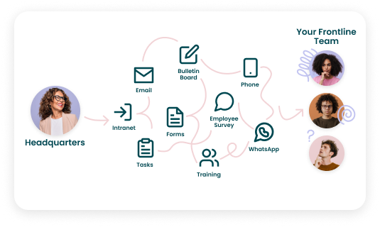 Vaak zijn zaken als slecht inwerken en onduidelijke communicatie de hoofdoorzaken van een negatieve werknemerservaring. Met het Frontline Portal kun je onboarding en andere trainingsmiddelen op één platform aanbieden. Je kunt de medewerker ook in contact brengen met managers en hen directe feedback geven over de taken die ze toegewezen hebben gekregen, waardoor ze sneller leren.