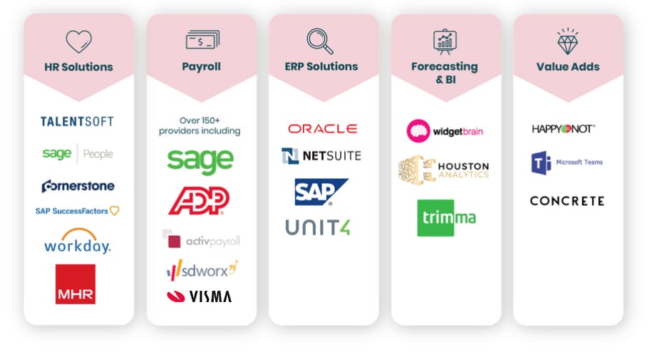 Integrasjoner med ditt system for HR master data, vil bety at du kan velge en Best of Breed løsning, som reduserer manuelt arbeid og øker effektiviteten.
