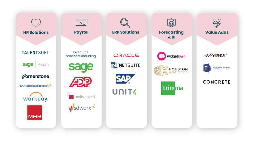 Vi integrerar med de populäraste HR-systemen på marknaden, så att du kan välja de bästa verktygen för just din verksamhet.