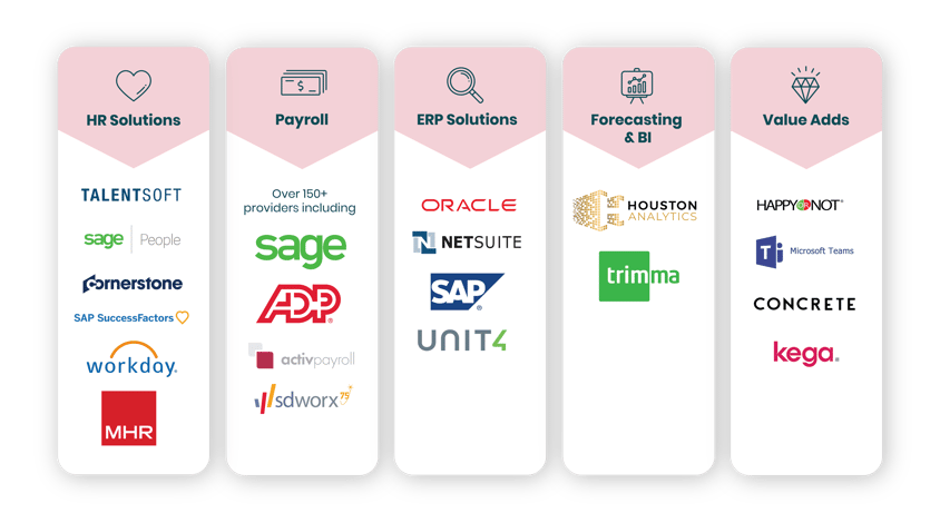 Quinyx integrates seamlessly with most common HR and Payroll systems, and can also support custom integrations. Whether it's the ability to automate payroll or connecting to other Enterprise applications through REST API, we have you covered.